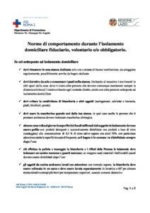 Norme di comportamento durante l’isolamento domiciliare